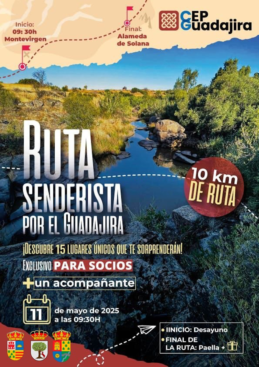 La primera edición de esta Ruta Senderista por el Guadajira partirá este domingo a las 9:30 desde el antiguo Convento de Montevirgen (del siglo XVI y ubicado en el término de Villalba de los Barros) y recorrerá 10 kilómetros, la mitad del trayecto con el que cuenta el sendero paralelo al río y que conecta las tres poblaciones. En este sentido, Luis Ángel López,  presidente la asociación Centro de Estudios del Patrimonio (CEP) del Guadajira, manifestó la intención de extender el trayecto en futuras ediciones, con el ambicioso objetivo de recorrer en alguna de ellas los 73 kilómetros por los que discurre el río Guadajira, desde La Lapa hasta Lobón.