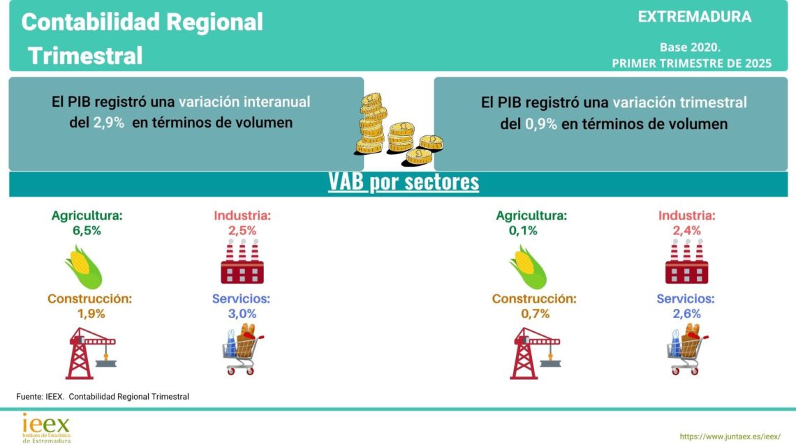 Hay un mayor dinamismo económico en la región como certifica el crecimiento del PIB real que registra un avance del 2,9% en el primer trimestre de 2025, superior a la media española, que registra un avance del 2,8%, crecen todos los sectores económicos.