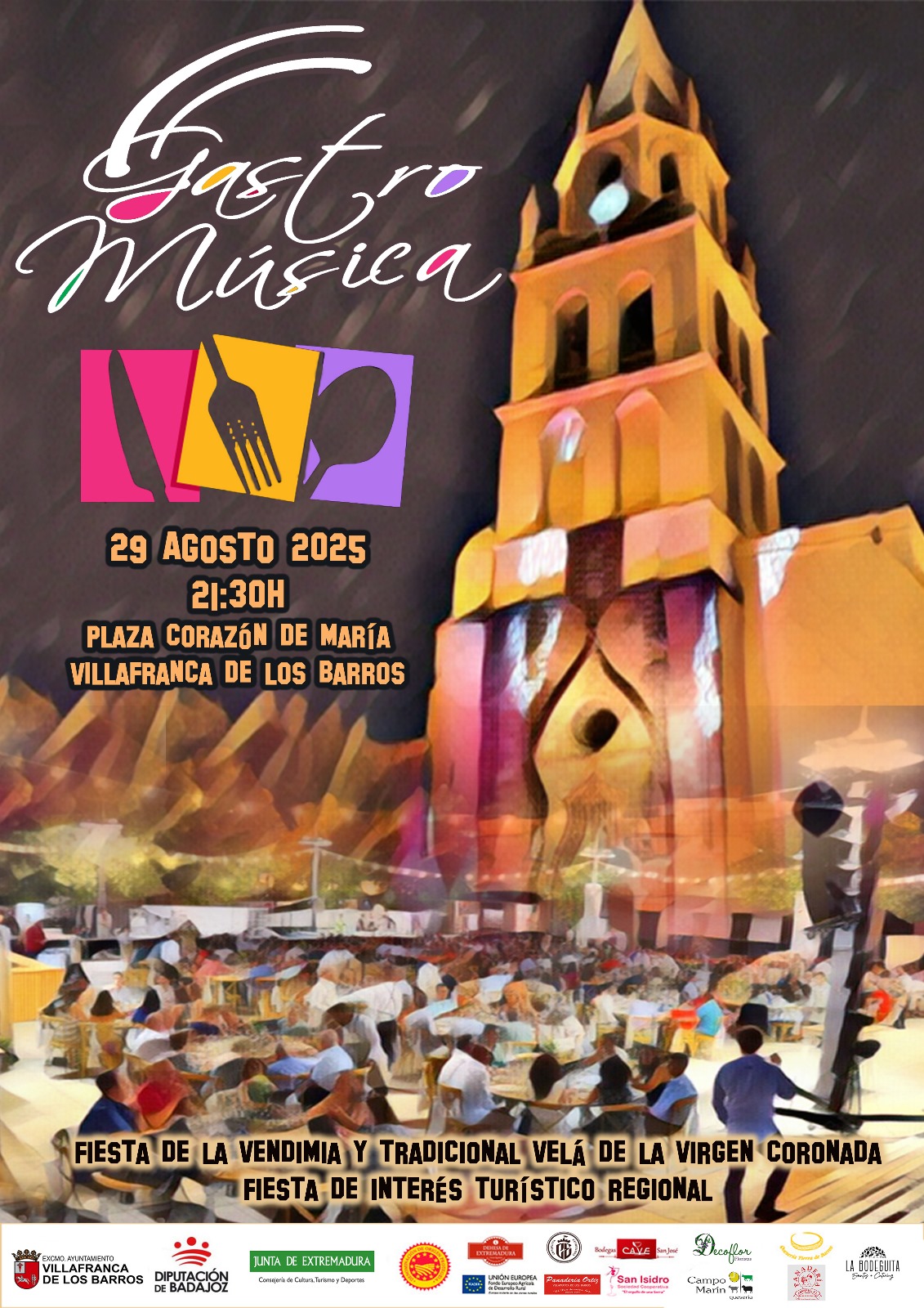 Esta decimoctava edición de Gastromúsica tendrá lugar el próximo viernes día 29 de agosto a las 21:30 horas en la Plaza del Corazón de María. Las entradas, que tienen un precio de 40 euros, se pondrán a la venta a partir del día 19 en la Oficina de Turismo de Villafranca de los Barros.