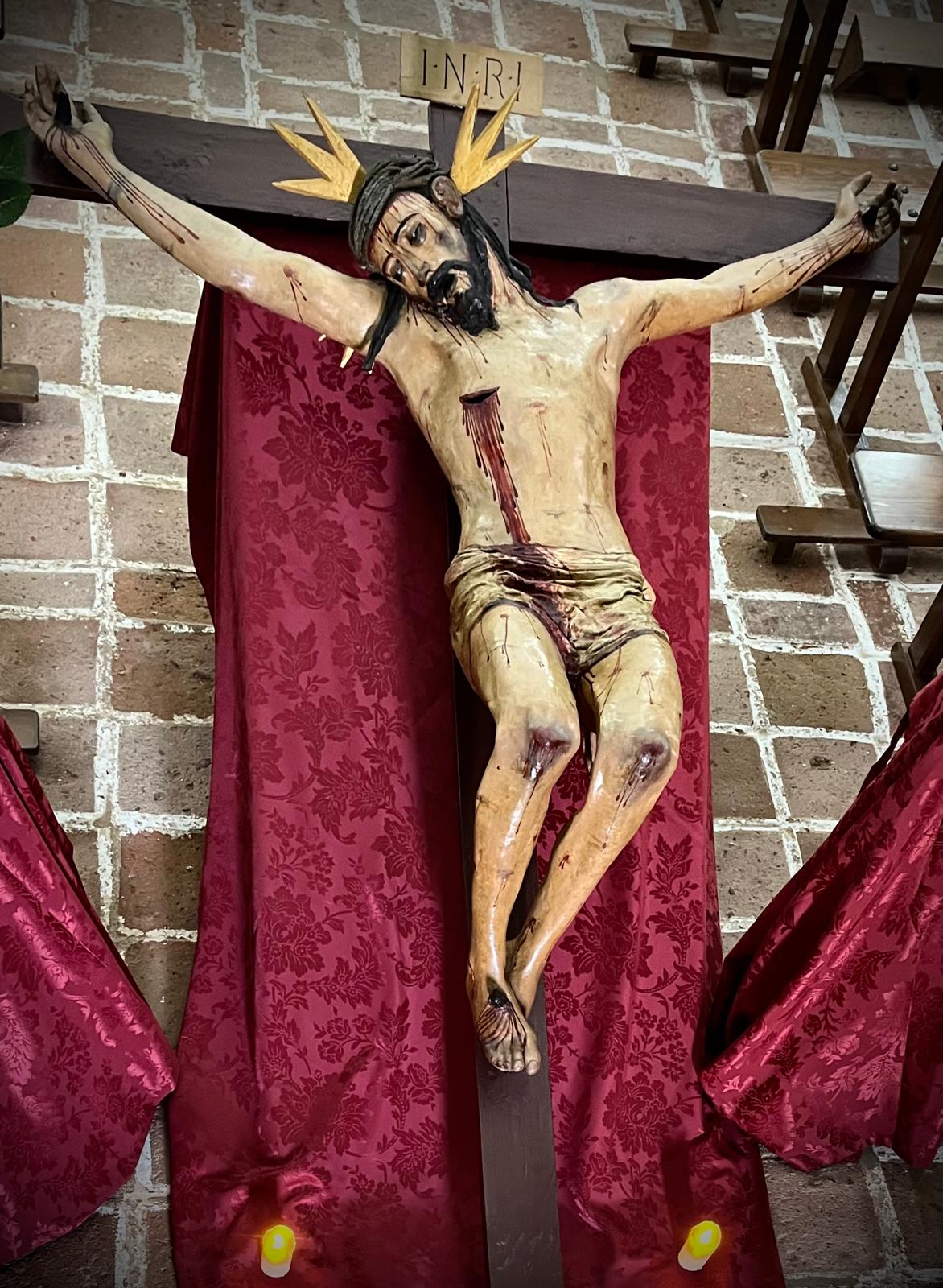 Se trata de una escultura de bulto redondo, policromada y hueca en su interior, lo que le otorga una notable ligereza —no supera los 5 kilos de peso— en comparación con las tallas en madera. Representa a Cristo en el momento de la crucifixión y conserva elementos originales como el paño de pureza tallado, aunque hoy luce un faldellín de tela.