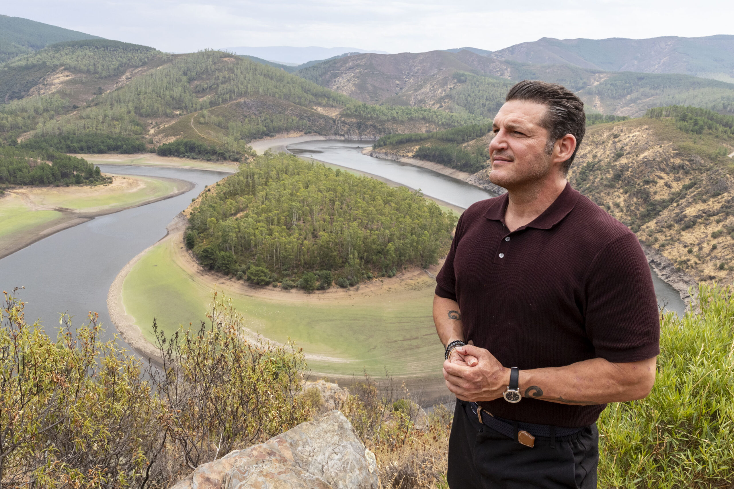 El icónico Meandro Melero, el mirador de Las Hurdes por el que todo viajero cae rendido, causó la misma sensación en el cantante, que hizo varias paradas para mandar en directo fotos y vídeos a su familia y amigos además de para hacerse toda foto que le pedían los turistas a su paso. Lleve más o menos agua, el Meandro Melero es siempre visita obligada por la espectacularidad de su paisaje y este mes de agosto no iba a ser menos.