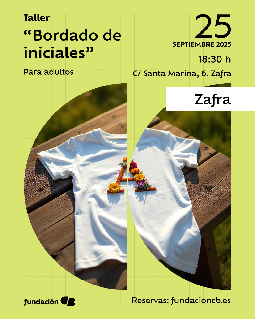 Taller “Bordado de iniciales” para adultos en Zafra el 25 de septiembre a las 18.30 horas en el Centro Cultural “Santa Marina”. Va dirigido a público adulto, los asistentes disfrutarán de una experiencia creativa mientras aprenden la técnica de bordado de letras con motivos florares.