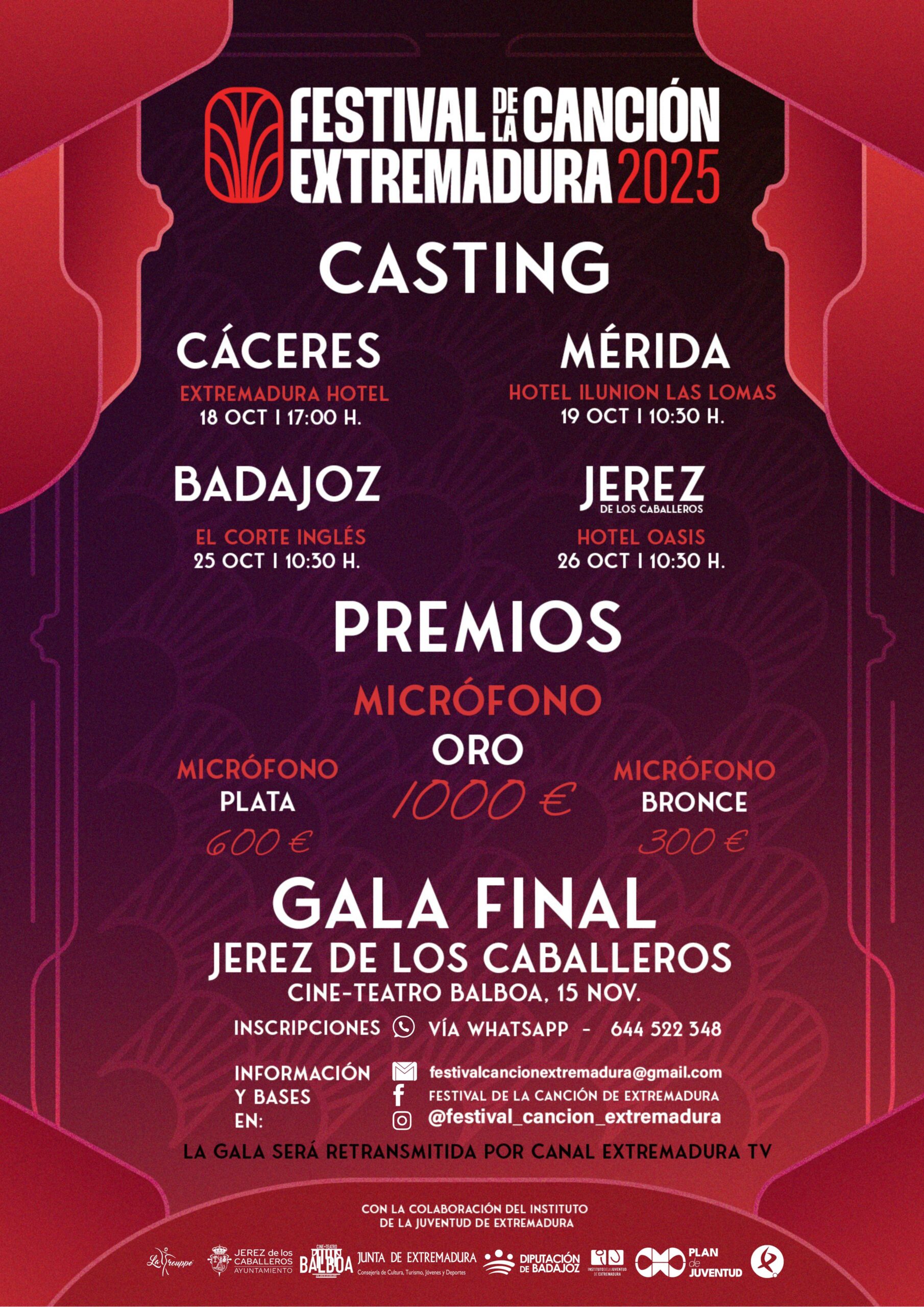 La Sala de Prensa de la Diputación de Badajoz ha acogido hoy la presentación de la vigesimoprimera edición del Festival de la Canción de Extremadura, que volverá a contar con cuatro castings y cuya Gala Final se celebrará el 15 de noviembre en el Teatro Balboa de Jerez de los Caballeros. Como viene siendo habitual, esta será emitida por Canal Extremadura Televisión y contará con dieciséis finalistas que competirán por alzarse con tres premios.