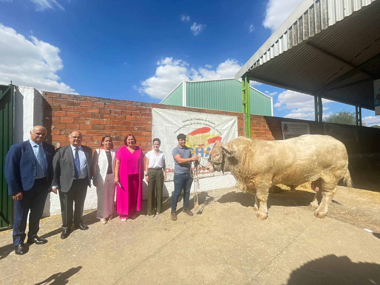 Raquel del Puerto, presidenta de la Diputación de Badajoz, ha acudido hoy a la Feria Internacional Ganadera (FIG) y 572 Tradicional de San Miguel de Zafra acompañada del vicepresidente primero, Juan María Delfa, y de los diputados provinciales Ana Belén Vals, Paqui Silva, Ricardo Cabezas, Francisco Buenavista y Manuel Gómez. También han asistido la secretaria de Estado de Agricultura y Alimentación, Begoña García, la consejera de Agricultura, Mercedes Morán, y el alcalde zafrense, Juan Carlos Fernández.