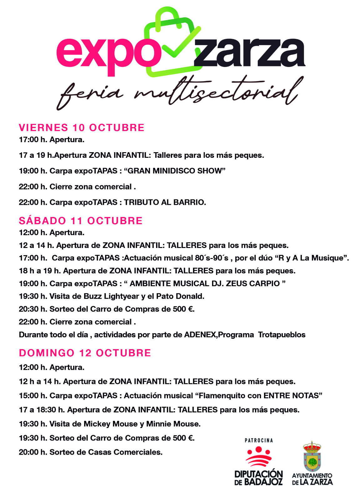 La Feria Multisectorial de La Zarza, EXPOZARZA, volverá a desarrollarse este fin de semana con el objetivo de dinamizar la economía y los comercios locales. Organizada por el Ayuntamiento de La Zarza y con la colaboración de la Diputación de Badajoz, la muestra celebrará entre este viernes 10 de octubre y el domingo día 12 su decimoquinta edición consolidada como una plataforma indispensable para la promoción de los negocios de la localidad y la creación de empleo y riqueza.