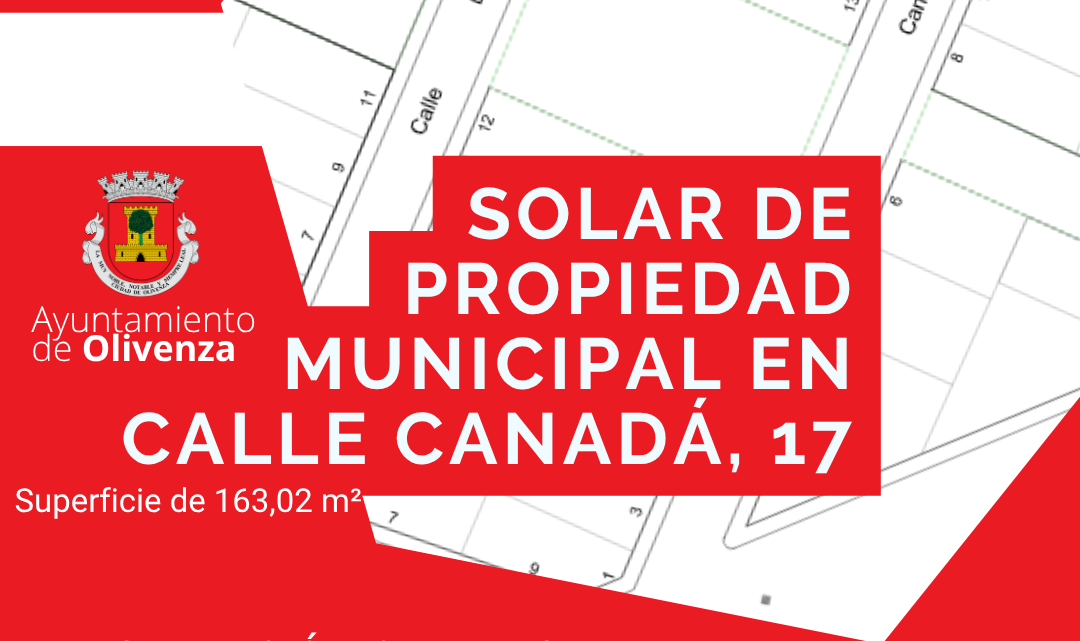 El Ayuntamiento de Olivenza ha abierto la licitación para la venta de una parcela de titularidad municipal situada en la calle Canadá nº17, en la barriada de Los Amigos, destinada a la construcción de viviendas de protección pública.