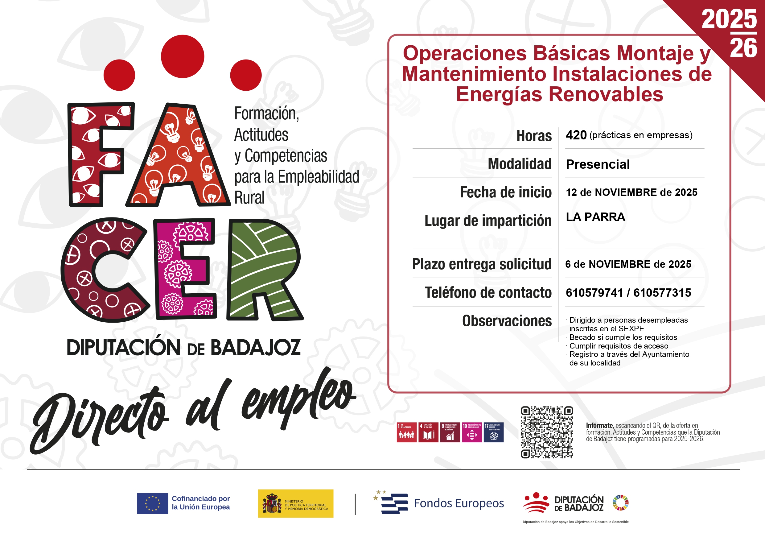 FACER cartel_Curso Operaciones Básica Montaje y Mantenimiento Instalaciones de Energías Renovables Octubre 2025 Compartir noticia en: Infoprovincia — octubre 16, 2025
