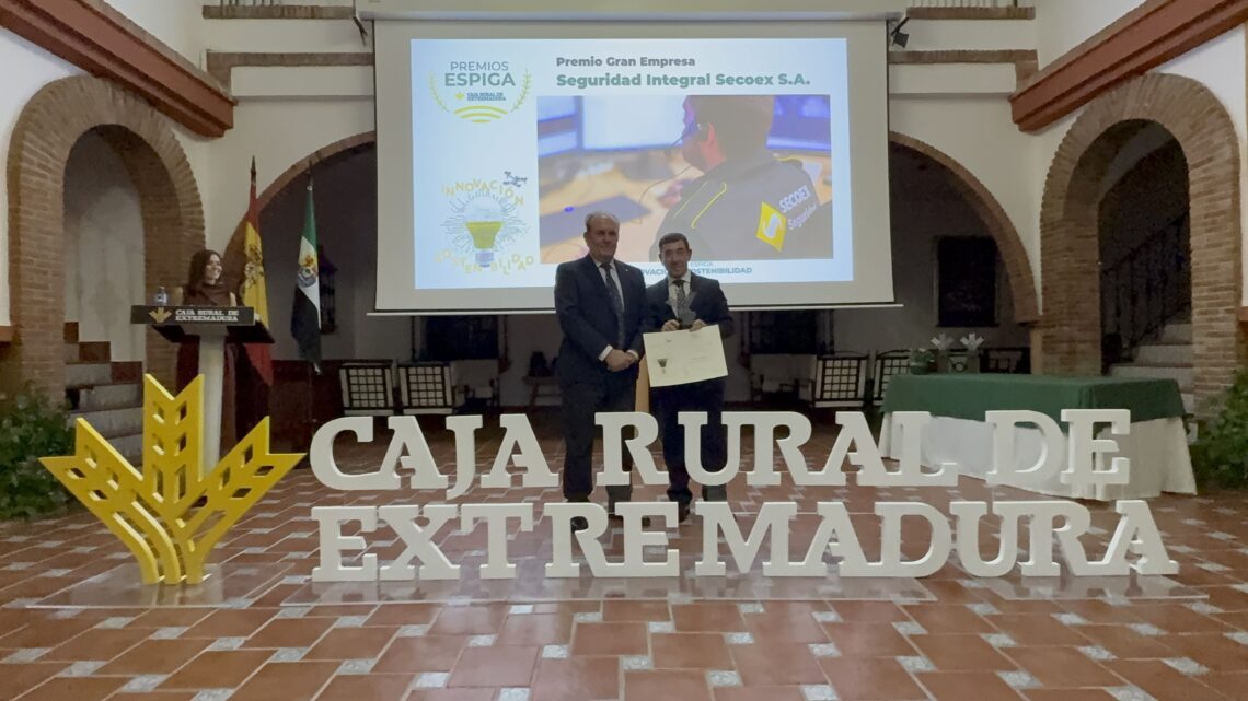 La empresa Seguridad Integral Secoex, S.A. ha sido reconocida con el Premio Gran Empresa en la gala de entrega de los II Premios Espiga Innovación y Sostenibilidad de Caja Rural de Extremadura, celebrada en la finca El Toril.