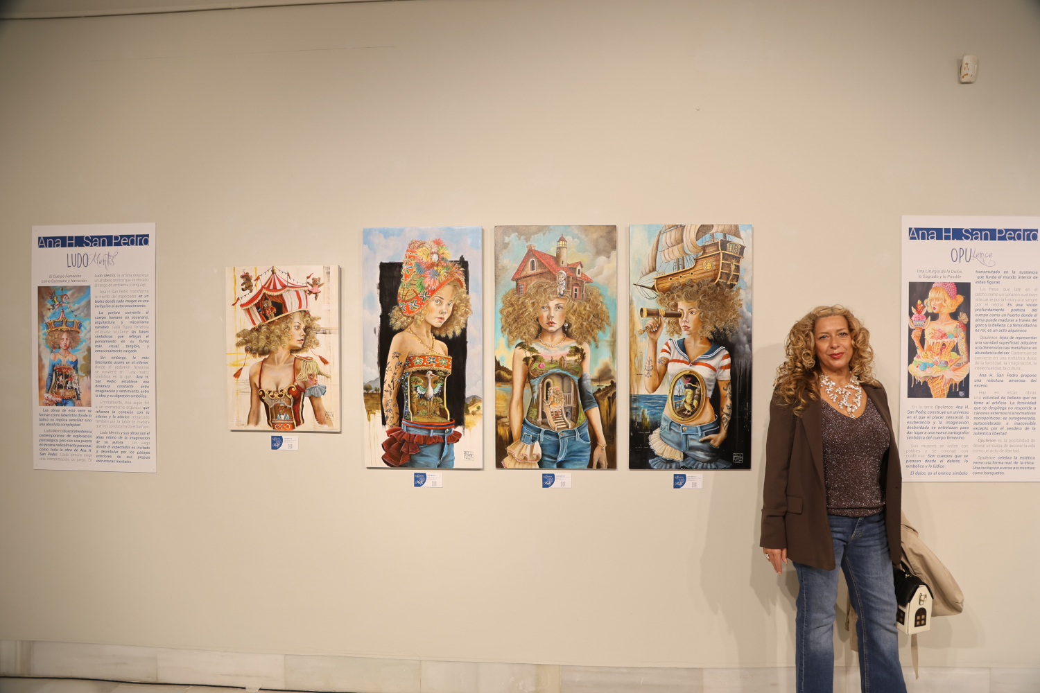 Lo que ha traído San Pedro a la capital pacense es una suerte de universo imaginativo, creado a partir de la lírica y lo onírico, que se presenta con una estética infantil, pero que pronto se descubre como toda una reivindicación del cuerpo femenino. La artista ha conectado el interior de las mujeres que ha pintado y ha hecho evidente el vínculo entre las entrañas de sus muñecas y las mentes que tanto atesoran.