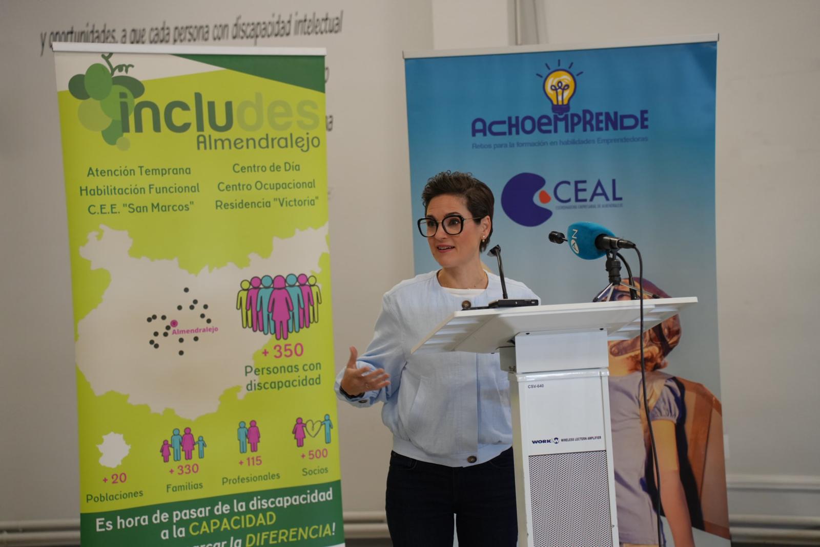 Durante su intervención en el acto celebrado en Almendralejo, Del Puerto ha puesto en valor el carácter inclusivo de esta edición, que incorpora la participación de Includes Almendralejo, “una forma más de seguir trabajando por los derechos y la igualdad de oportunidades de las personas con discapacidad, que también tienen derecho a emprender y a construir su proyecto de vida desde el entorno en el que residen”.