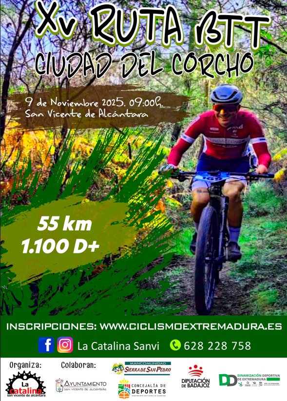 Hoy se ha presentado en la Diputación de Badajoz la XV Ruta BTT Ciudad del Corcho de San Vicente de Alcántara. Se celebrará el próximo 9 de noviembre y recorrerá 55 kilómetros.