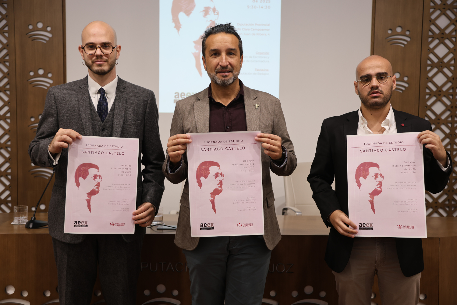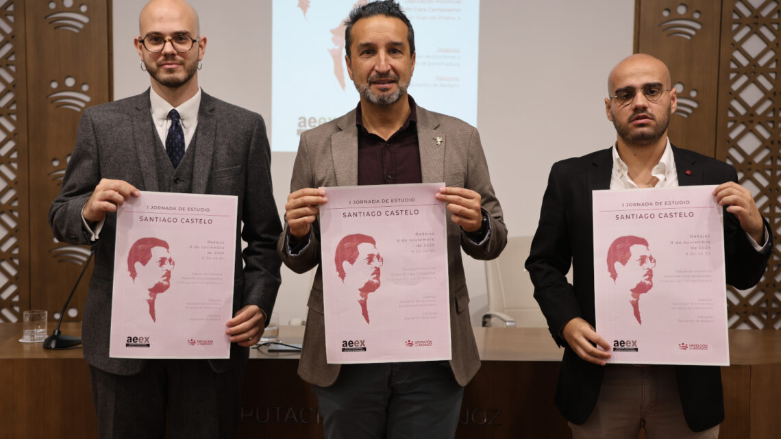 En rueda de prensa, el diputado de Identidad Cultural, Deporte, Juventud, Bienestar Social y Cooperación Internacional, Ricardo Cabezas, ha ofrecido toda la información previa junto al secretario de la AEEX, Ángel Borreguero, y al miembro del comité organizador de la Jornada, Carlos García. Cabezas ha afirmado que “es un honor para esta Institución acoger y ser la sede donde se encontrarán mañana académicos, escritores, periodistas y lectores, pero sobre todo personas que valoran todo lo que Santiago Castelo aportó a nuestra región”.