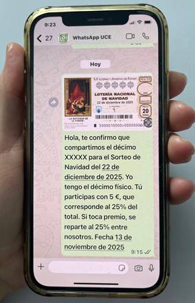 Según la normativa de Loterías y Apuestas del Estado, si un décimo está compartido entre varias personas, basta con que haya pruebas claras del acuerdo, como un mensaje de WhatsApp con los siguientes datos: Número del décimo. Fracción compartida (ej. “50 %”, “2 participaciones de 10 €”). Nombre de las personas que participan. Confirmación de pago (si se ha realizado). Fecha del mensaje.