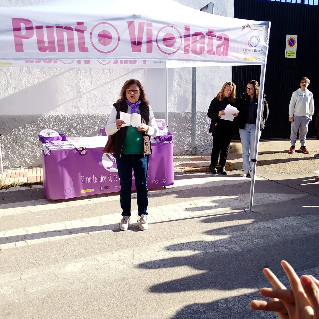 La marcha realizó una parada simbólica en la Plaza del Ayuntamiento, donde se expresó públicamente el compromiso colectivo con una sociedad libre de violencias. El recorrido finalizó en la zona del mercadillo, donde se instaló un Punto Violeta, gestionado por las agentes de igualdad de la Mancomunidad Tierra de Barros–Río Matachel, que ofrecieron asesoramiento, materiales informativos y recursos especializados.