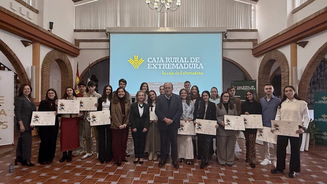 Caja Rural de Extremadura ha entregado este sábado la décima edición de sus Becas Espiga Educación para los alumnos con mejores expedientes académicos de Educación Secundaria Obligatoria (ESO), Formación Profesional Básica y Formación Profesional de Grado Medio de Extremadura del curso 2024-2025.
