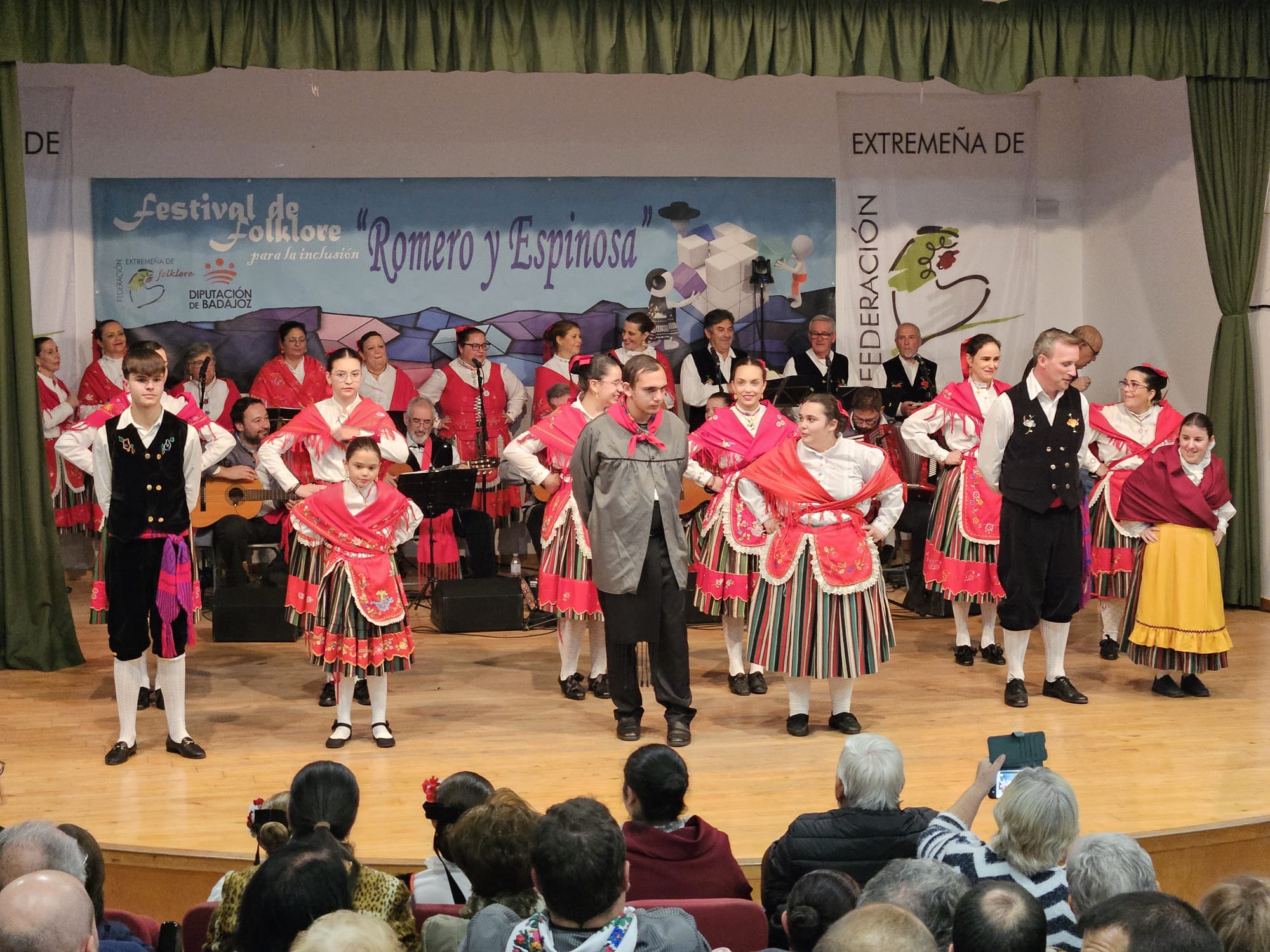 La localidad pacense de Fuente del Maestre acogió, el pasado sábado 29 de noviembre, el XI Festival de Folklore para la Inclusión “Romero y Espinosa” , organizado por la Federación Extremeña de Folklore, con el patrocinio de la Diputación de Badajoz, y la estrecha colaboración del ayuntamiento fontanés y el Grupo de Coros y Danzas local “Vive lo Nuestro”.