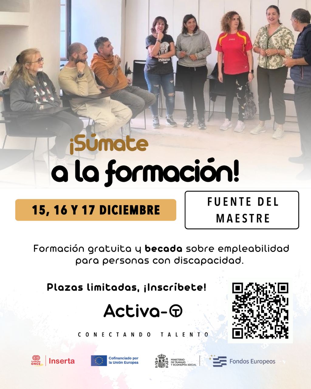 Esta iniciativa tiene abierta la inscripción en la web https://activatextremadura.es/ y se enmarca en el Programa Estatal de Empleo Juvenil (CCI 2021ES05SFPR001) y el Programa de Inclusión Social, Garantía Infantil y Lucha contra la Pobreza (2021ES05SFPR003) que está desarrollando Fundación ONCE a través de Inserta Empleo, con la cofinanciación de la Unión Europea para incrementar la formación y el empleo de las personas con discapacidad.