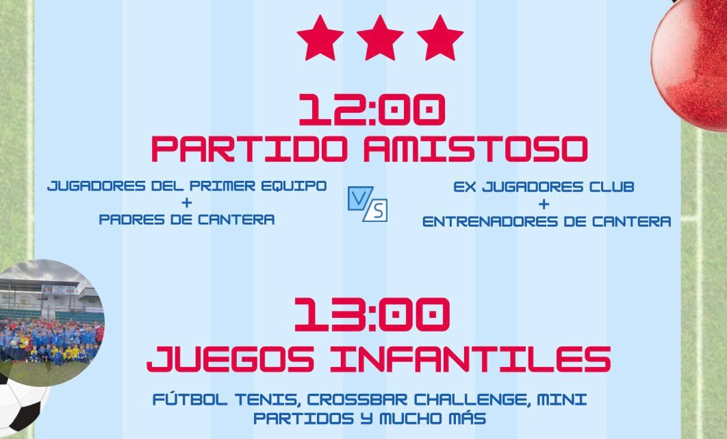 La iniciativa, pensada para todos los públicos, arrancará a las 12:00 horas con un partido amistoso muy especial que enfrentará a jugadores del primer equipo y padres de la cantera contra exjugadores del club y entrenadores de las categorías inferiores. El encuentro se disputará en dos partes de treinta minutos, sin marcador oficial, con el objetivo de disfrutar del fútbol desde su vertiente más lúdica y simbólica.
