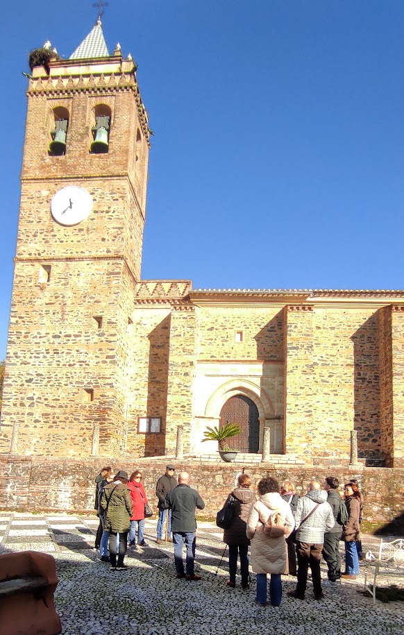 Situada entre los límites del Parque Natural Sierra de Aracena y Picos de Aroche, y curiosamente más próxima a Portugal que a la capital onubense, la localidad ofreció a los visitantes un recorrido guiado que tuvo como punto de partida la Oficina de Turismo, ubicada en la avenida de San Martín. Desde allí, y de la mano del guía local José Ramos, comenzó un itinerario por los principales hitos monumentales del casco histórico.