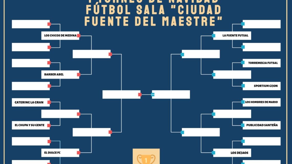 En este torneo de Navidad van a participar un total de 11 equipos: La Fuente Futsal (Fuente del Maestre), Los chicos de Medina (Fuente del Maestre), Torremejía Futsal (Torremejía), Sportium Gijón (Fuente del Maestre), Publicidad Santeña (Fuente del Maestre), El Dulce FC (Almendralejo), Catering La Gran Familia (Almendralejo), Los Hombres de Mario (Fuente del Maestre), Barber Abel Cuts (Fuente del Maestre), Los Dejaos (Fuente del Maestre), y El chupa y su gente (Fuente del Maestre).