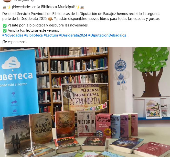 En 2026 la Diputación de Badajoz continuará dotando con fondos bibliográficos y audiovisuales a las bibliotecas y agencias de lectura municipales de la provincia pacense gracias los 150.000 euros que ha resuelto destinar.