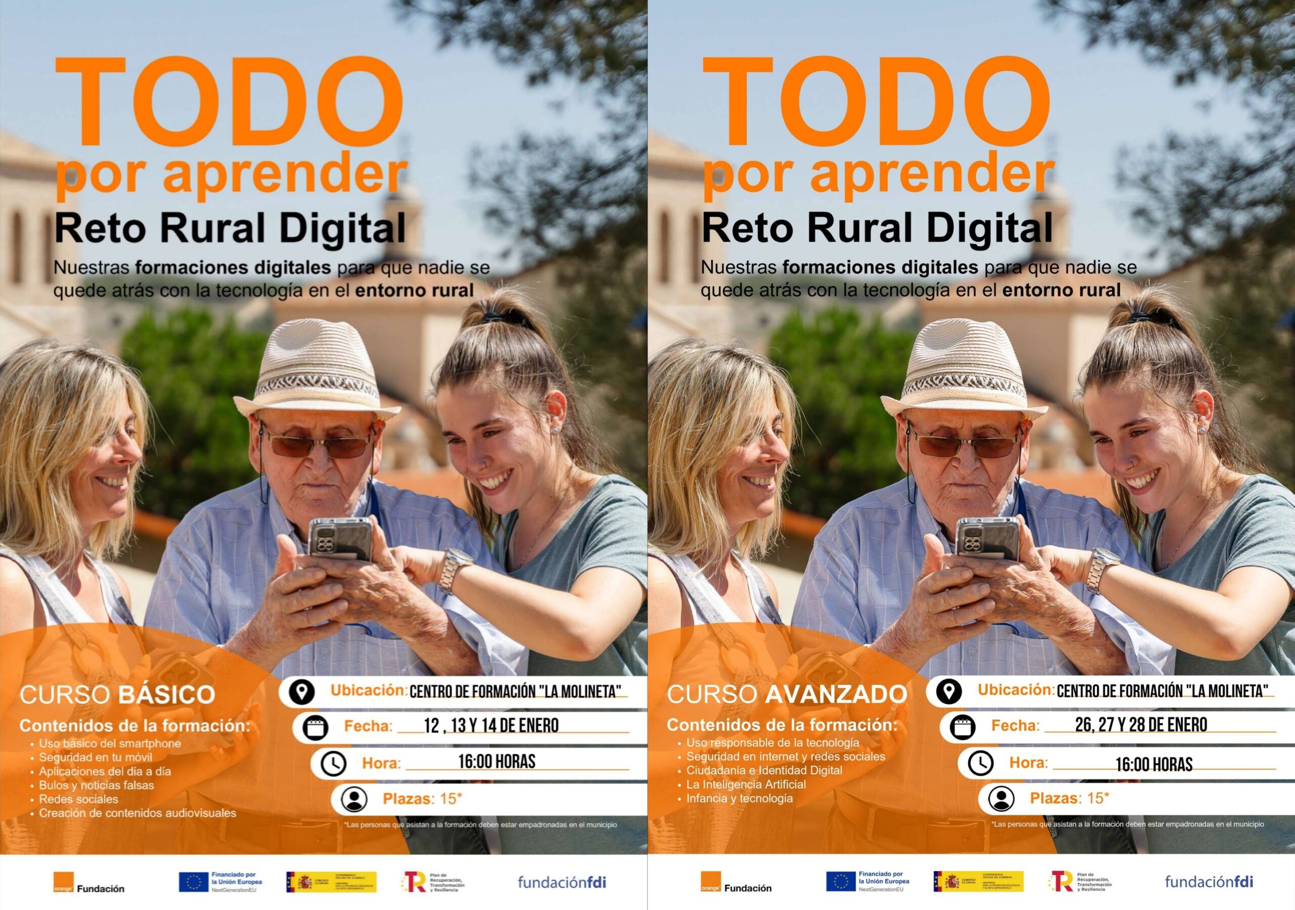 El programa Reto Rural Digital está desarrollado por Fundación Orange en colaboración con Fundación FDI, y forma parte del Plan de Recuperación, Transformación y Resiliencia del Gobierno de España, financiado por la Unión Europea a través del programa NextGenerationEU y coordinado por el Ministerio para la Transición Ecológica y el Reto Demográfico.