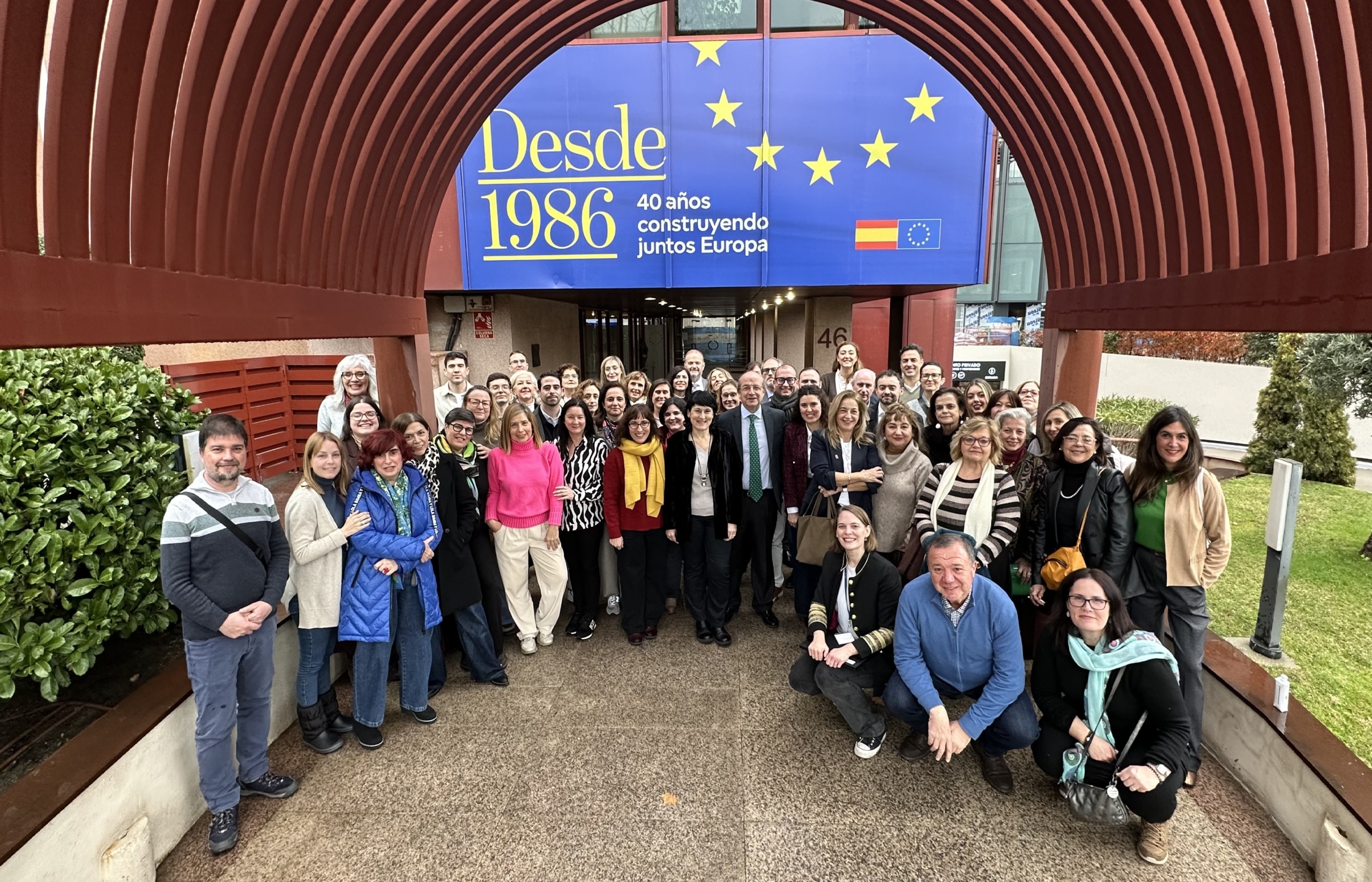 En la misma han participado los 37 miembros de la nueva red Europe Direct 2026-2030 que acabamos de iniciar la andadura el pasado 1 de enero, aunque realmente solo hay 3 novedades entre los nuevos centros: León, Galicia y Barcelona, mientras que los otro 34 centros ya formábamos parte de la anterior 2021-2025. La reunión ha servido de presentación también a la red del nuevo director de la Representación de la Comisión Europea en España, Daniel Calleja, y de despedida del Jefe del Servicio de Comunicación de la Comisión en España, Juan González Maillo. En esta reunión han participado también representantes de los Centros de Documentación Europea en España.