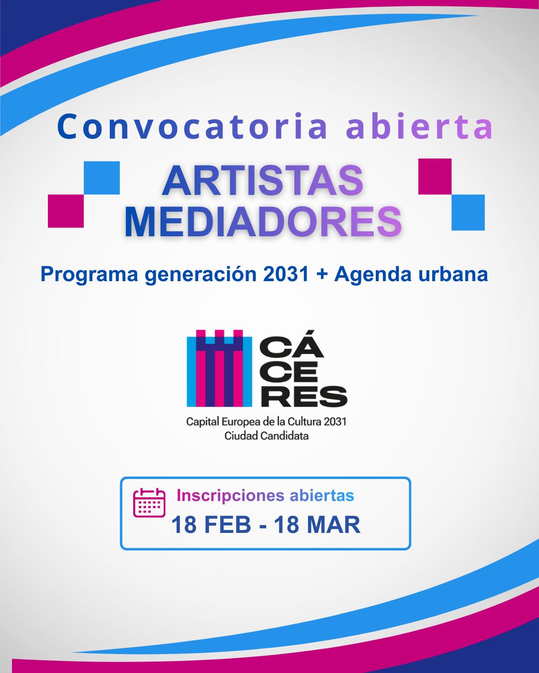 La candidatura de Cáceres a Capital Europea de la Cultura 2031 ha abierto una convocatoria para seleccionar artistas mediadores que desarrollarán actividades con jóvenes en el marco del programa Generación 31, una iniciativa que apuesta por la participación juvenil en la construcción cultural de la ciudad.