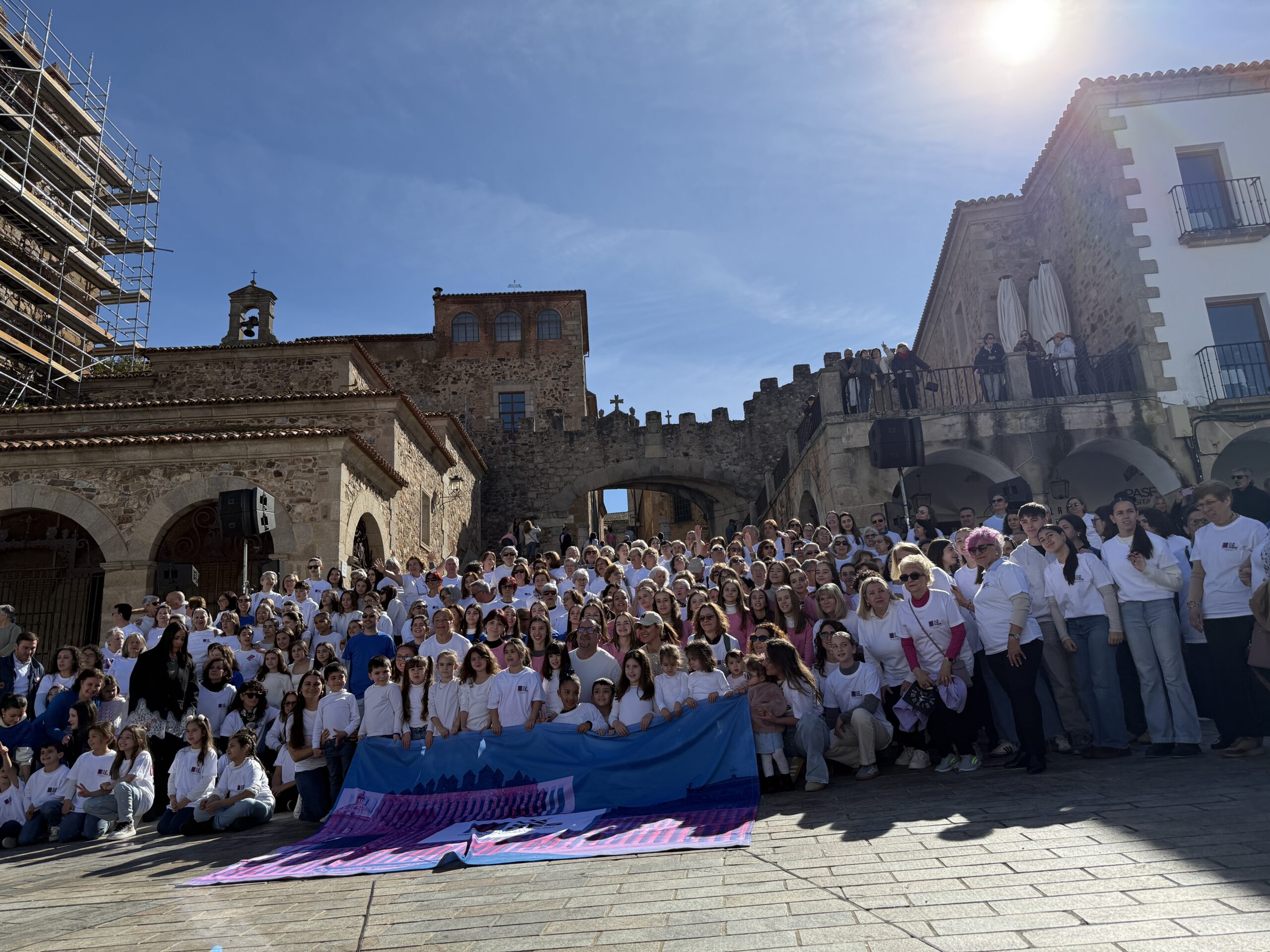 El flashmob, también vinculado con la designación de Cáceres como Ciudad Europea del Deporte en este 2026, ha culminado con una formación humana que ha recreado la silueta de la Torre de Bujaco, símbolo presente en la identidad visual de la candidatura, generando una potente imagen colectiva que resume el espíritu del proyecto: cultura compartida, participación y construcción conjunta de ciudad.