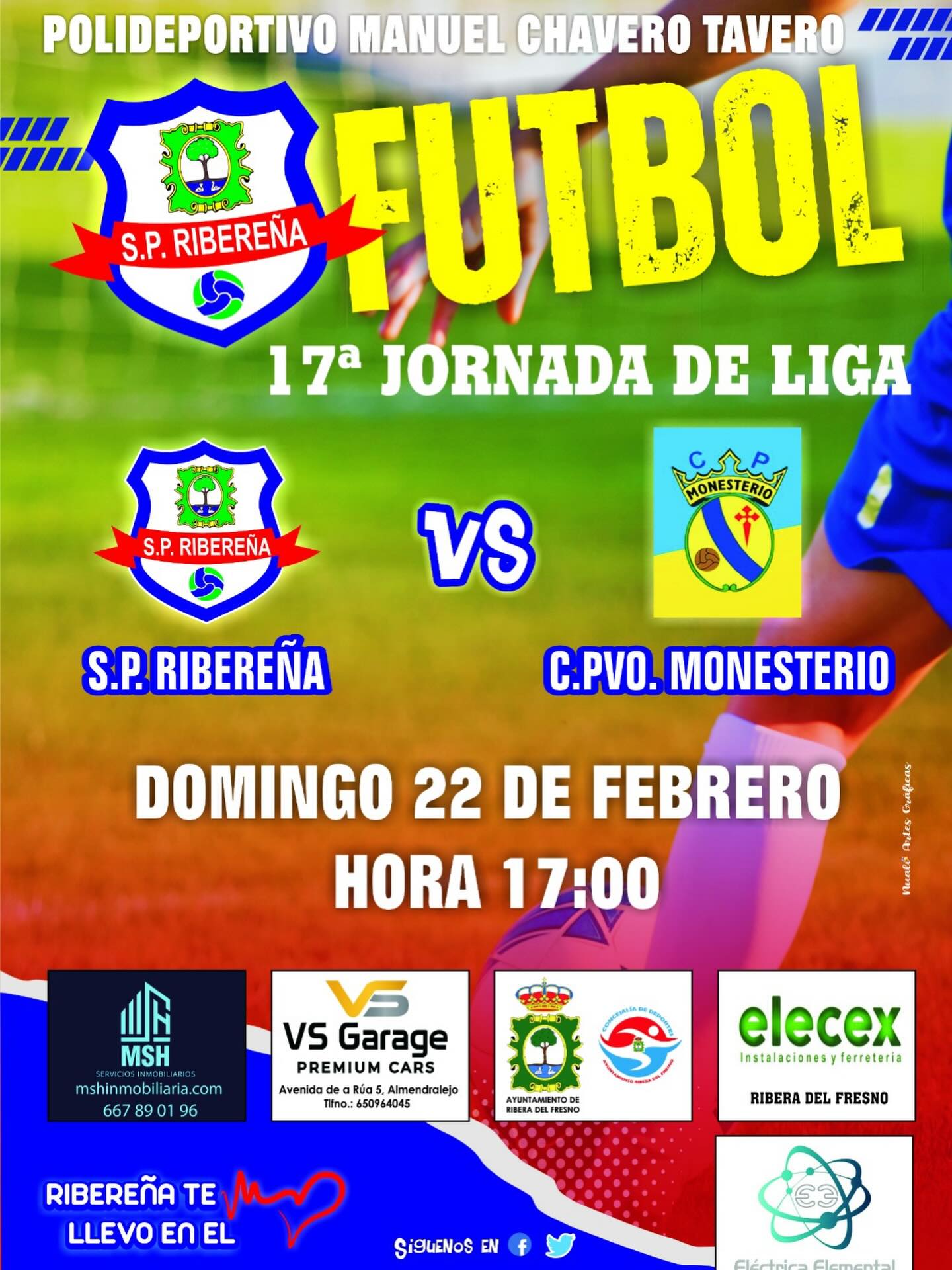 El encuentro contará con el respaldo de los patrocinadores habituales —MSH Servicios Inmobiliarios, VS Garage Premium Cars, Elecex Instalaciones y Ferretería y Eléctrica Elemental— así como con el apoyo de la Concejalía de Deportes del Ayuntamiento de Ribera del Fresno, reflejo del compromiso institucional y empresarial con el proyecto deportivo.