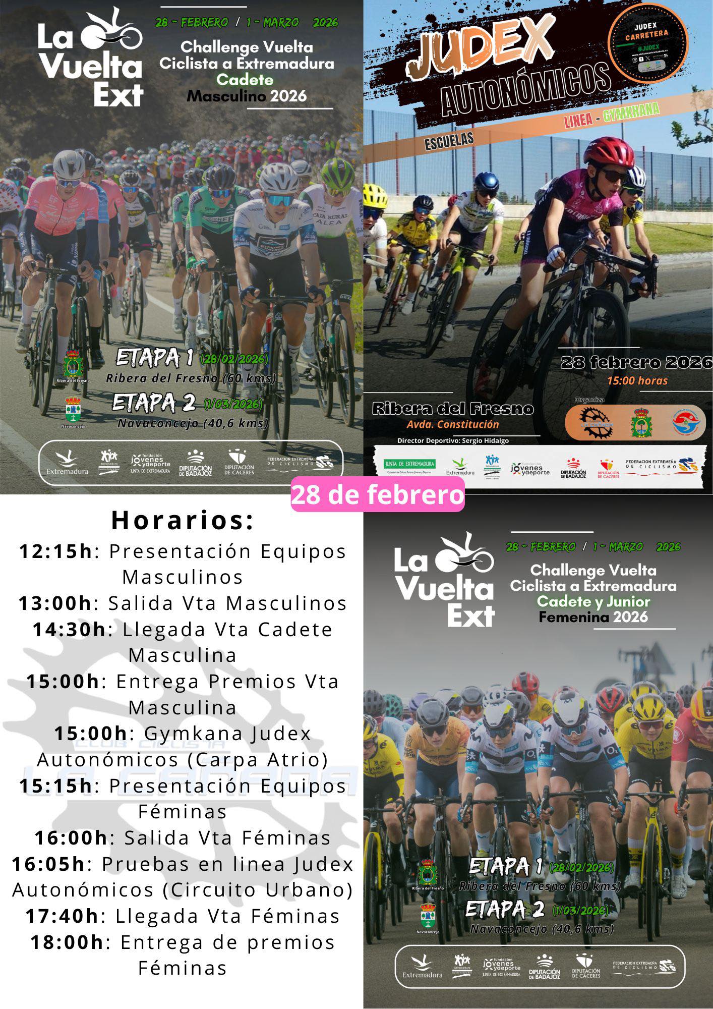 La prueba masculina cadete, con salida a las 13:00 horas, cubrirá un recorrido de 60 kilómetros entre Ribera del Fresno y Navaconcejo. Por su parte, la categoría femenina —cadete y junior— afrontará a partir de las 16:00 horas un trazado de 40,6 kilómetros. Ambas competiciones forman parte del calendario oficial de la Federación Extremeña de Ciclismo y suponen el arranque efectivo de la temporada en carretera en la región.