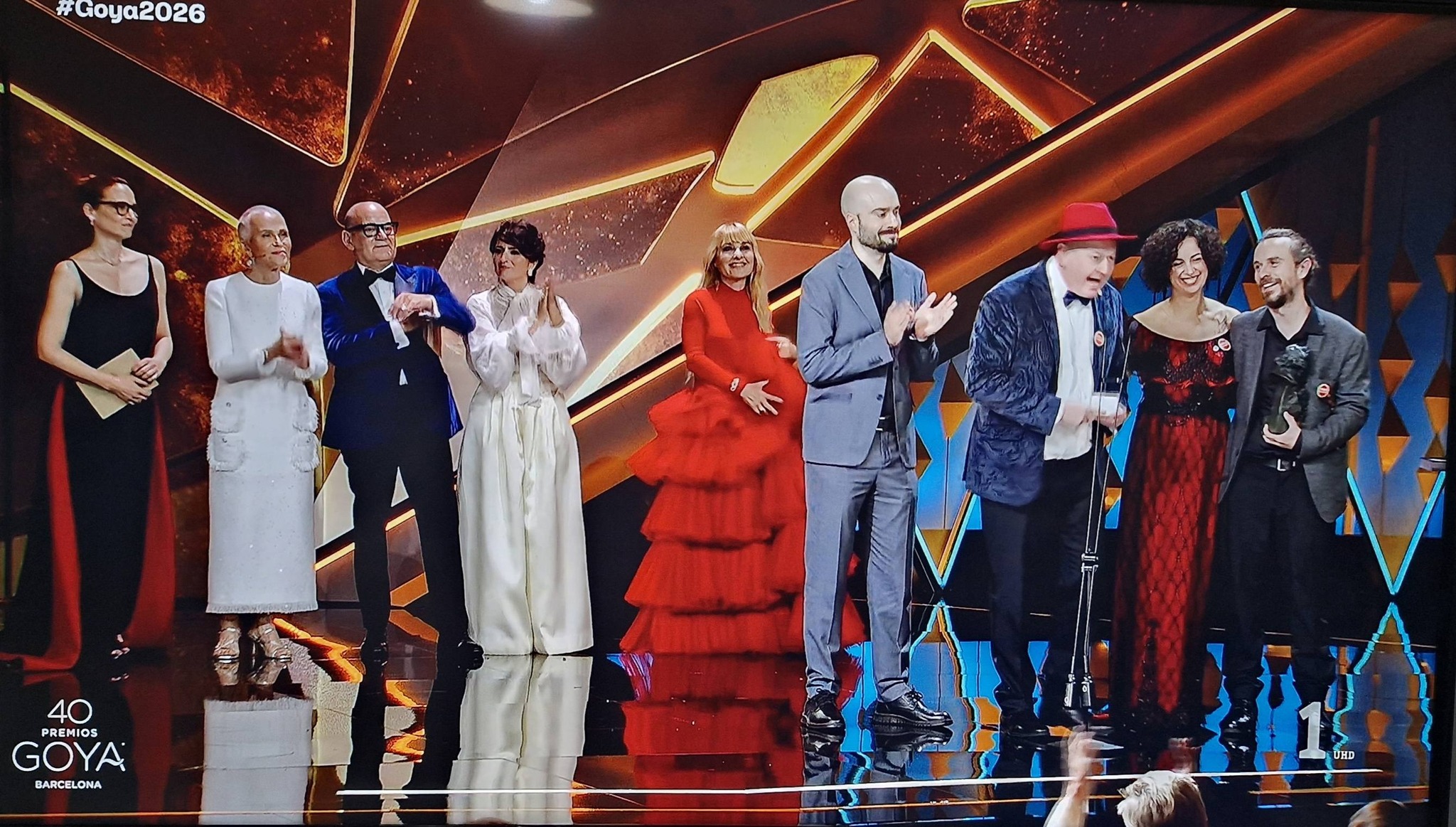 La anécdota: una vez fuera del escenario, nos abrazamos los cuatros emocionadísismos, y Arturo me dio sin querer un buen coscorrón con el Goya, que pesa lo suyo… Ja, ja, ja… Luego llegaron las fotos, atender a los medios, y las colas para hacerse fotos con el cabezón”.