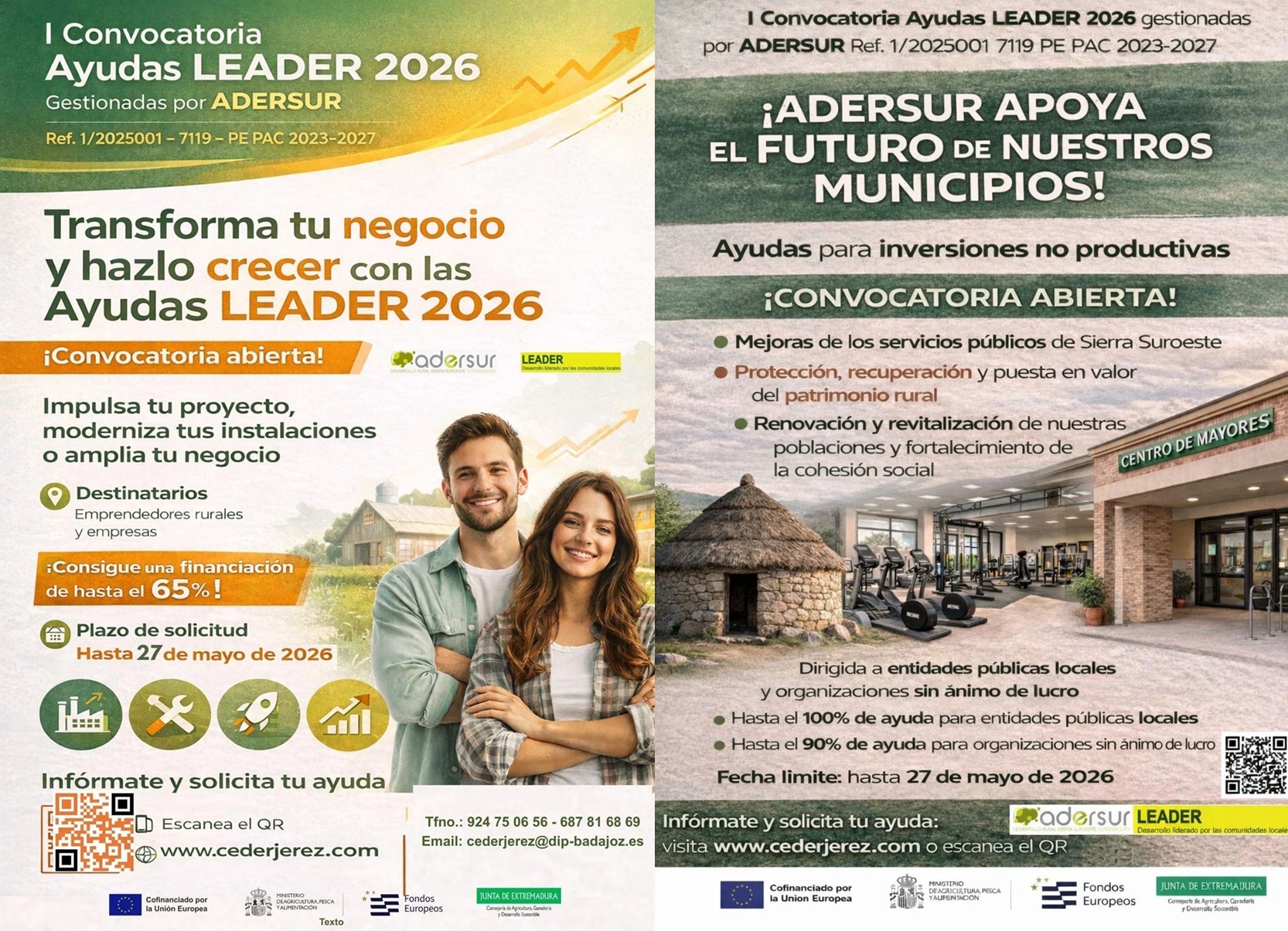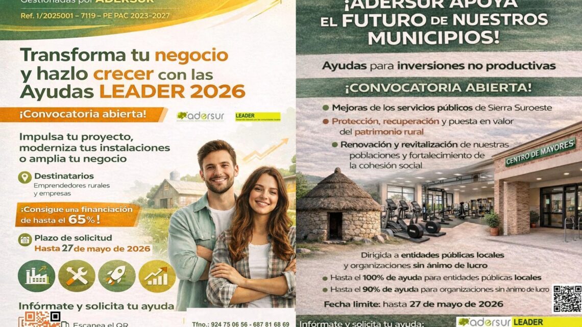 Información de las próximas convocatorias de ayudas LEADER 7119 y PE PAC 2023-2027, gestionadas por ADERSUR, para impulsar tu proyecto, modernizar tus instalaciones o ampliar tu negocio.