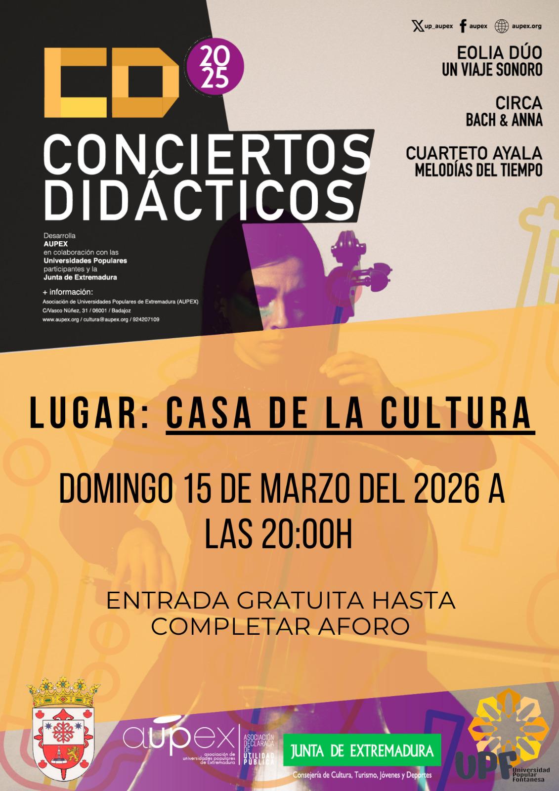 Un evento cultural que se encuadra en los Ciclos de Conciertos Didácticos impulsados por AUPEX (la Asociación de Universidades Populares de Extremadura) , en colaboración en este caso con la Universidad Popular Fontanesa /ayuntamiento de Fuente del Maestre, y con la Consejería de Cultura, Turismo, Jóvenes y Deportes de la Junta de Extremadura.