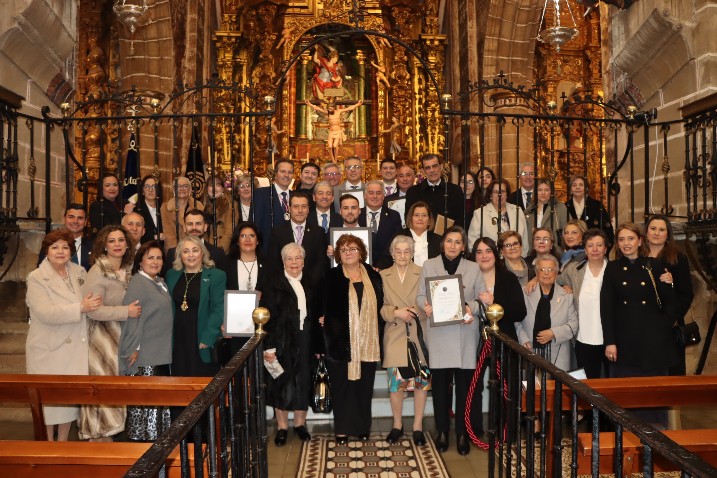 Durante el acto se hizo entrega también de las insignias ‘Cruz de Guía’, con las que las distintas Hermandades y Cofradías reconocieron la dedicación y el compromiso de personas y colectivos vinculados al mundo cofrade: la Cofradía de Santo Domingo de Guzmán y Nuestra Señora del Rosario a Antonio Sánchez López, la Antigua y Pontificia Cofradía de Nuestra Señora del Rosario y Jesús Orando en el Huerto a María Isabel Gutiérrez Matos, la Cofradía de Señor Ecce-Homo y Nuestra Señora de los Desamparados al grupo de Cocineros y cocineras de los Garbanzos, la Pontificia y Real Archicofradía del Santísimo Sacramento a Juan Eugenio Carrón Matos, la Pontificia y Real Cofradía del Señor Coronado de Espinas, Santísimo Cristo de la Flagelación y María Santísima de la Amargura a José Antonio Torrado Pérez, la Real Hermandad de Nuestro Padre Jesús del Gran Amor y María Santísima de la Esperanza Macarena a Juan Miguel Ontiveros Martínez, y la Cofradía de Nuestro Padre Jesús Nazareno al Grupo que elabora los dulces.