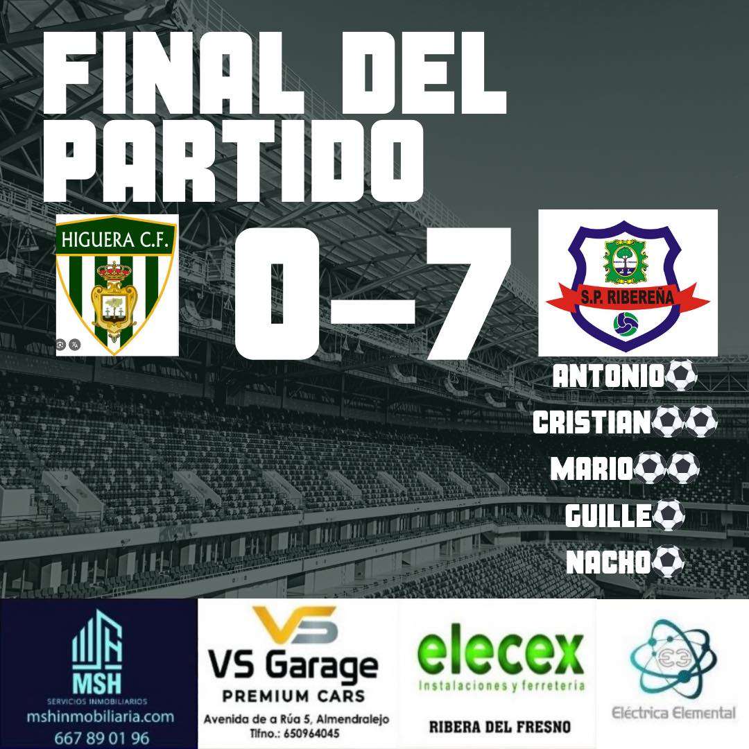 La SP Ribereña firmó una de sus actuaciones más completas de la temporada tras imponerse con autoridad por 0-7 al Higuera CF en el encuentro disputado el pasado 15 de marzo, correspondiente a la competición liguera en la Segunda División Extremeña.