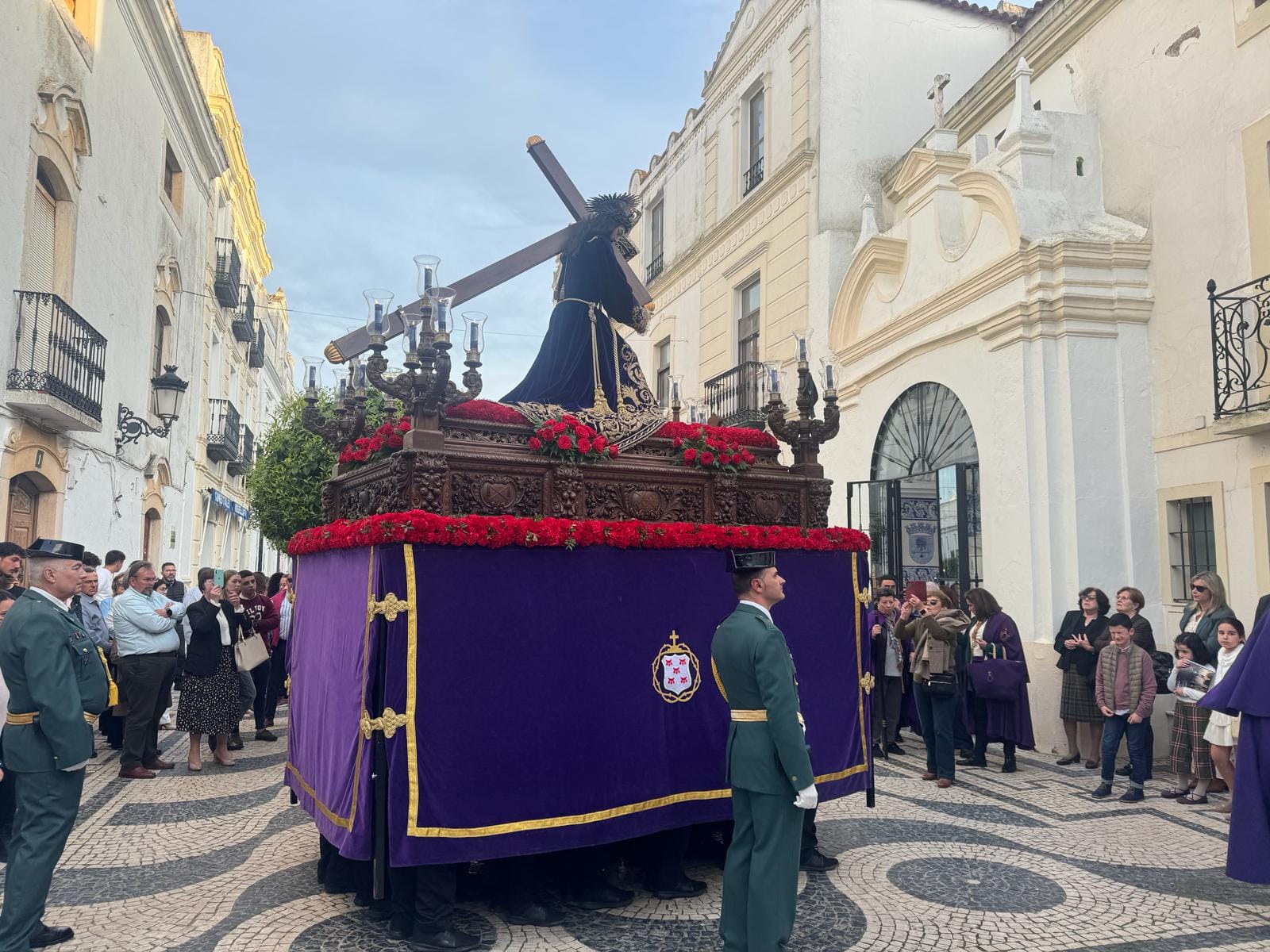 Tras la suspensión del pasado año por las inclemencias meteorológicas, la procesión regresa con especial expectación. El paso, portado por 24 costaleros, recorrerá las calles acompañado por la música de la Excma. Sociedad Cultural “La Filarmónica” de Olivenza.