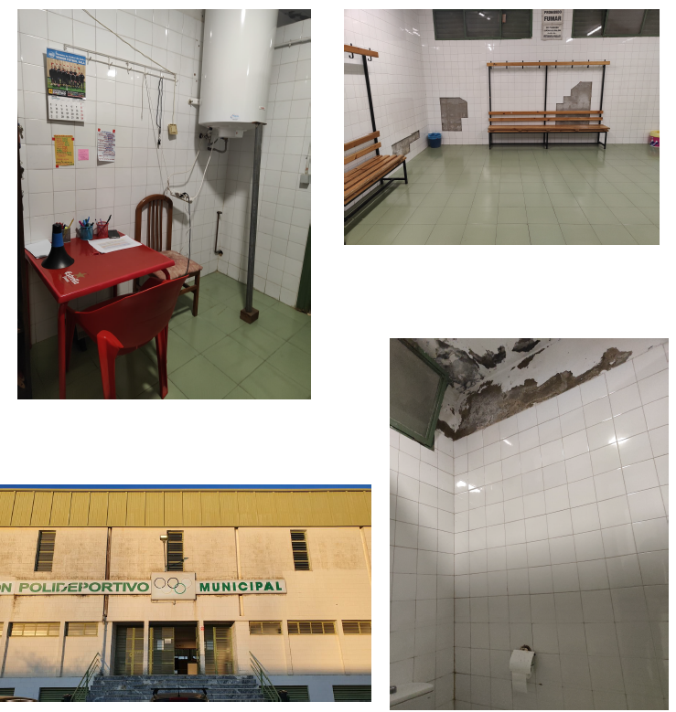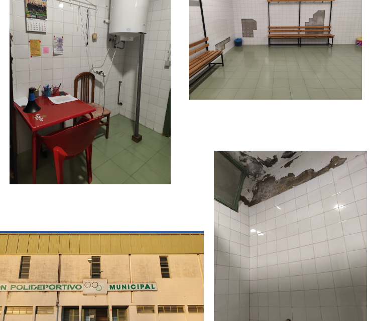 Además de su falta de capacidad, las instalaciones presentan numerosas deficiencias derivadas del paso del tiempo y la falta de mantenimiento, como cristales rotos, baldosas desprendidas en los vestuarios, sanitarios en mal estado y problemas de humedades en distintas zonas del recinto.
