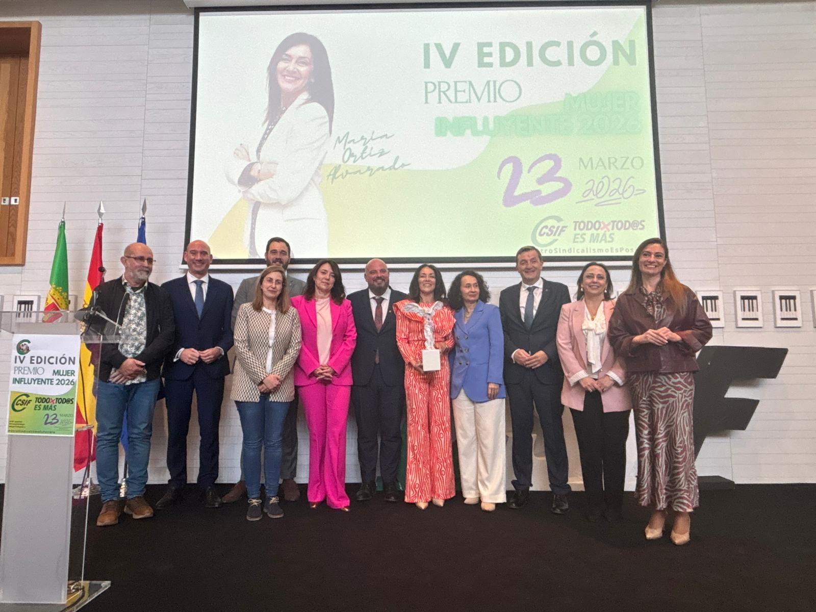 La Central Sindical Independiente y de Funcionarios (CSIF) en Extremadura ha reconocido este lunes en Cáceres la trayectoria de la directora general de Prensa Ibérica en la región, la periodista extremeña María Ortiz, con la entrega del premio ‘Mujer Influyente’ 2026 en una gala que se ha celebrado en el Museo Helga de Alvear. Estos galardones, que llegan a su cuarta edición, tienen como objetivo distinguir la labor de la mujer en favor de la igualdad de derechos y, desde su ámbito profesional y desde su influencia, en el desarrollo laboral, económico y social de nuestra comunidad autónoma.