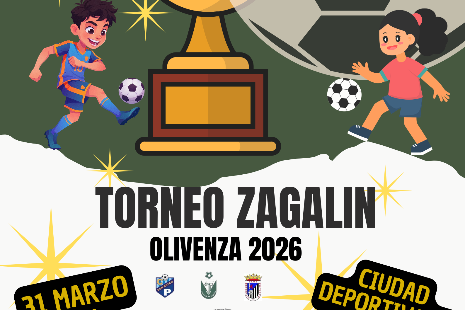 Olivenza acogerá el próximo 31 de marzo, a partir de las 16:00 horas, el Torneo Zagalín Olivenza 2026, una cita deportiva centrada en la categoría zagalín de segundo año que reunirá a varios equipos de la región.