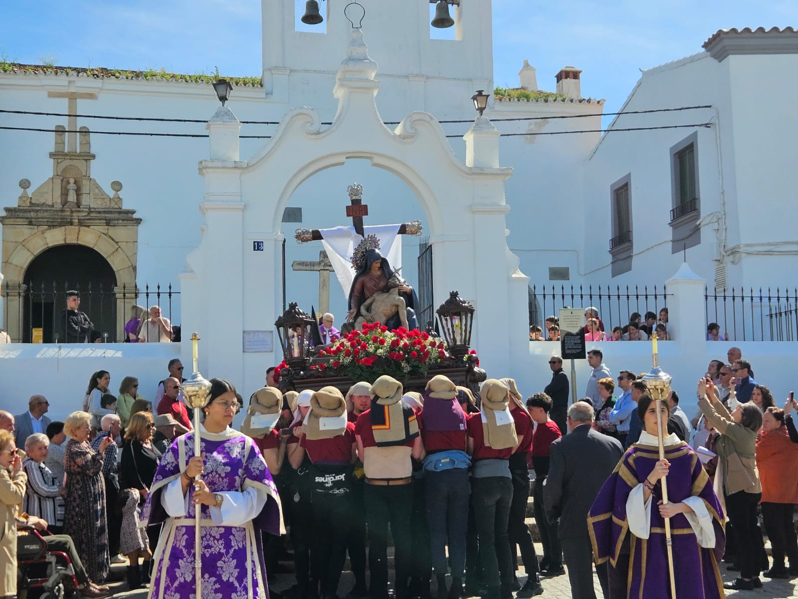 LA VIRGEN DEL MAYOR DOLOR Y EL CRISTO DE LA BUENA MUERTE PROCESIONARON EN FUENTE DEL MAESTRE EN LA MAÑANA DEL VIERNES SANTO