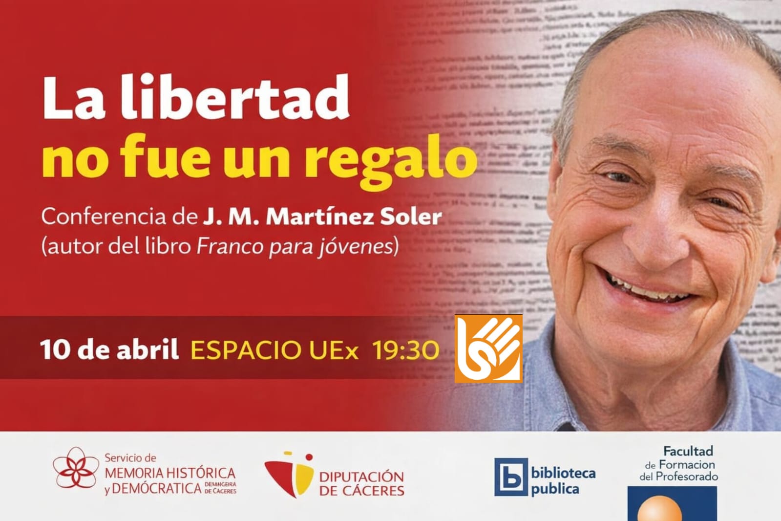 La primera tendrá lugar a las 10:30 horas en el Salón de Actos de la Facultad de Formación del Profesorado, donde mantendrá un encuentro con el alumnado en torno a su libro Franco para jóvenes, seguido de un coloquio. Ya por la tarde, a las 19:30 horas, intervendrá en el Espacio UEx (antiguo ILM) con la conferencia “La libertad no tiene precio”.