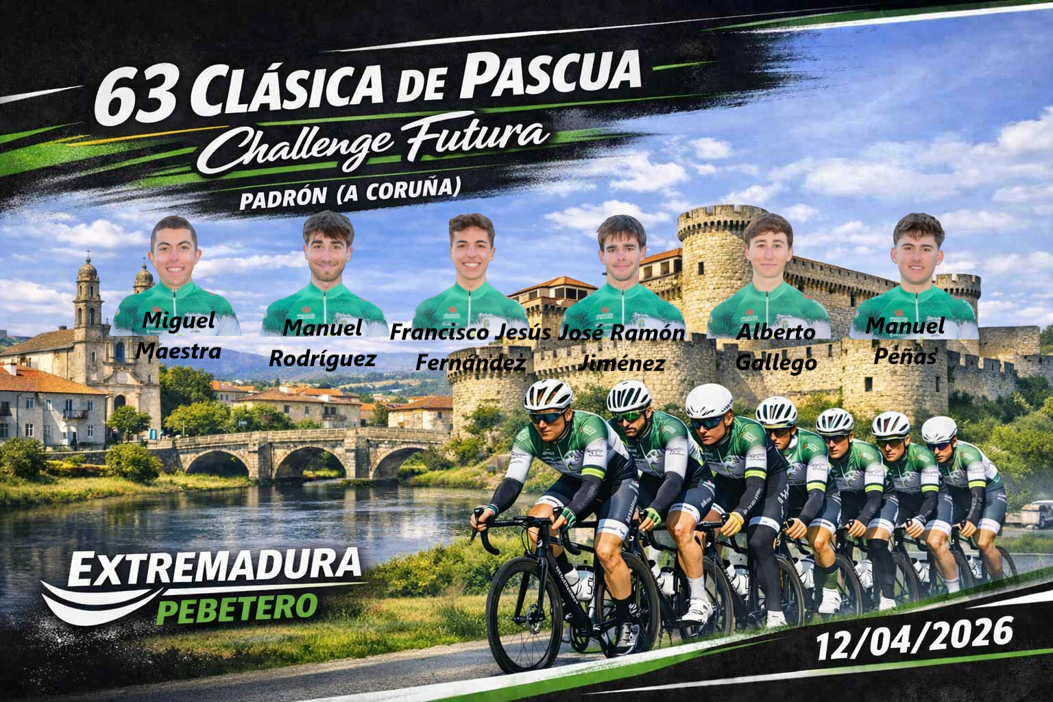 El equipo ciclista élite y sub 23, Extremadura Pebetero, patrocinado por la Fundación Jóvenes y Deporte, Pebetero Servicios y formación, Diputación de Badajoz, Ayuntamiento de Zafra y Bicicletas Rodríguez, competirá el domingo día 12 en la 63 Clásica de Pascua, que se celebrará en Padrón (A Coruña) última prueba de la Challenge Futura, competición profesional que motiva y da valor al equipo, que ha inscrito para la ocasión a Paco Fernández, José Ramón Jiménez, Manuel Peñas, Alberto Gallego, Manuel Rodriguez y Miguel Maestra. El equipo espera ser competitivo, dejar atrás las caídas y lesiones y defender el top 10 que José Ramón Jiménez ostenta en la clasificación general de la Challenge Futura.