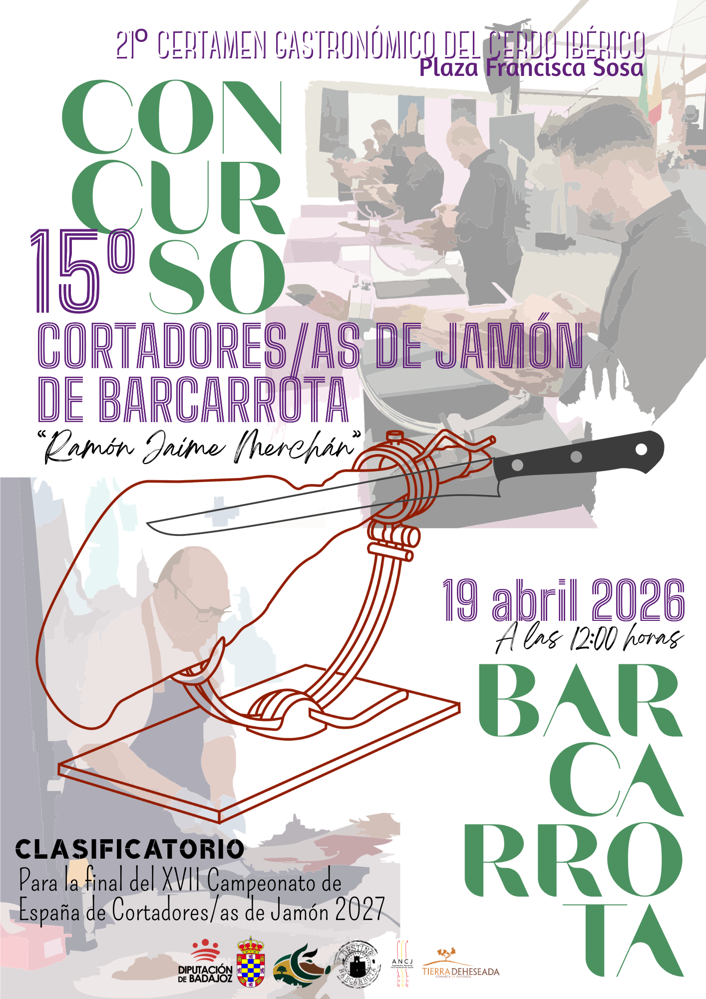 La competición más destacada es el XV Concurso Nacional Cortadores de Jamón de Barcarrota ´Ramón Jaime Merchán´, que se celebrará el domingo con seis participantes y cuyo ganador obtendrá una plaza para la final del XVII Campeonato de España, además de 300 euros y el trofeo del Jamón de Oro. El segundo clasificado obtendrá 200 € y Jamón de plata, y el tercero 150 € + Jamón de bronce. También habrá un premio de 50 euros al Mejor Plato Creativo.