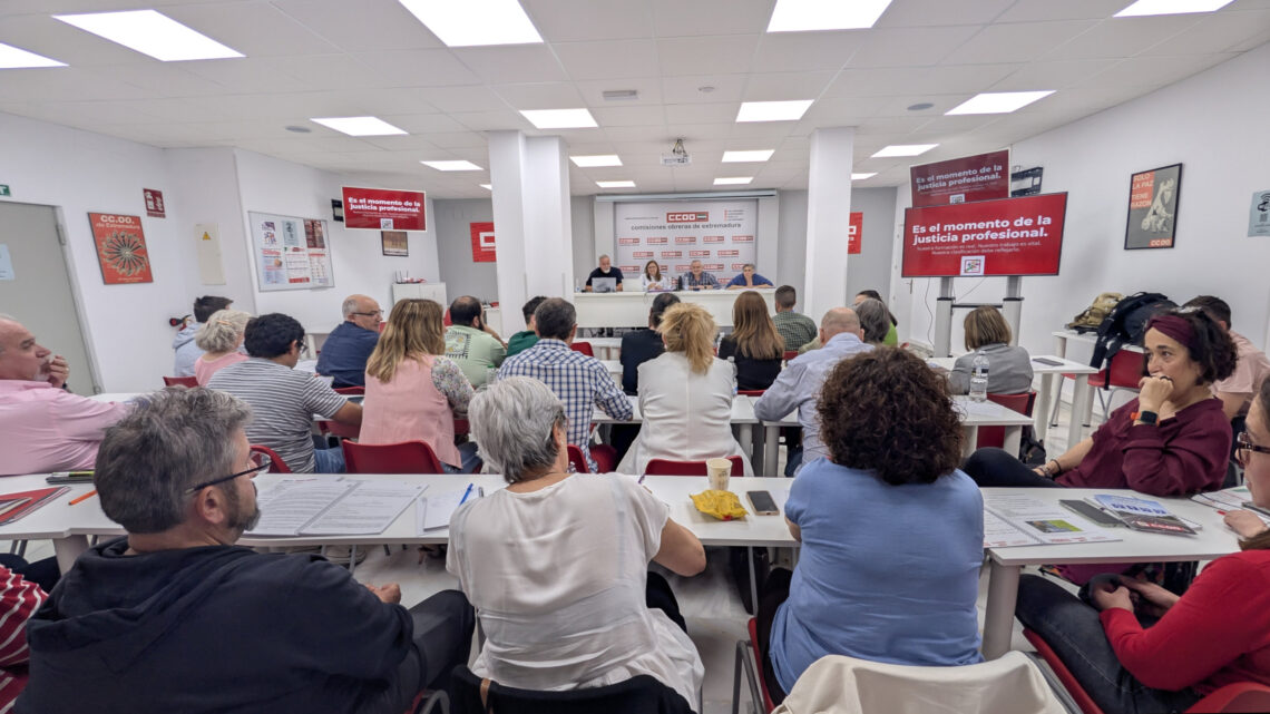 La Federación de Sanidad y Sectores Sociosanitarios de CCOO ha celebrado este 21 de abril una jornada de trabajo dirigida a delegados y delegadas del Servicio Extremeño de Salud procedentes de todas sus áreas, centrada en el análisis del Anteproyecto de Ley del Estatuto Marco del Personal Estatutario de los Servicios de Salud, un texto llamado a redefinir las condiciones laborales y profesionales del conjunto del personal sanitario.