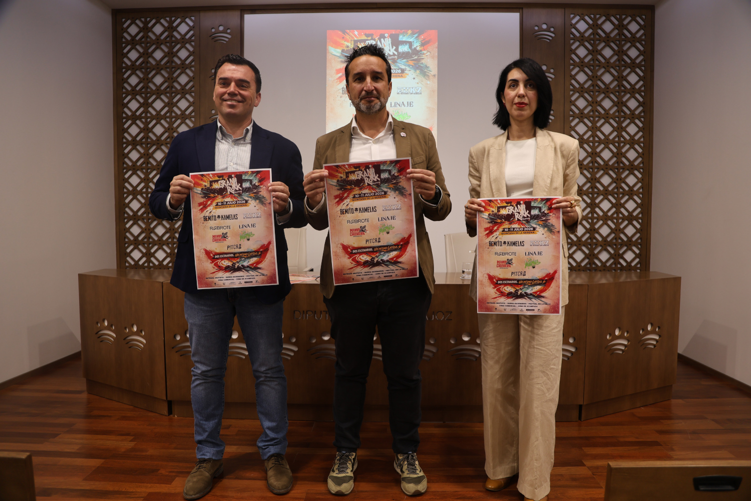 Hoy se ha presentado en la Diputación de Badajoz el Festival Granirock, “una cita ya consolidada en nuestra provincia y que vuelve a situar a Quintana de la Serena en el mapa cultural y musical de nuestro país”, ha dicho el diputado, Ricardo Cabezas, durante la rueda de prensa conjunta entre él, el alcalde, Raimundo Dávila, y la directora del Centro de las Artes Escénicas y de la Música de Extremadura, Nuria M.ª Franco.