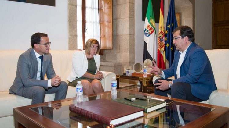 El presidente de la Junta de Extremadura, Guillermo Fernández Vara, y los presidentes de las diputaciones provinciales de Badajoz, Miguel Ángel Gallardo, y Cáceres, Rosario …