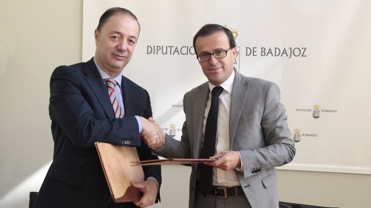 El presidente de la Diputación de Badajoz, Miguel Ángel Gallardo, y Emilio Vázquez, presidente de la Fundación Caja Badajoz, han suscrito un nuevo convenio de …
