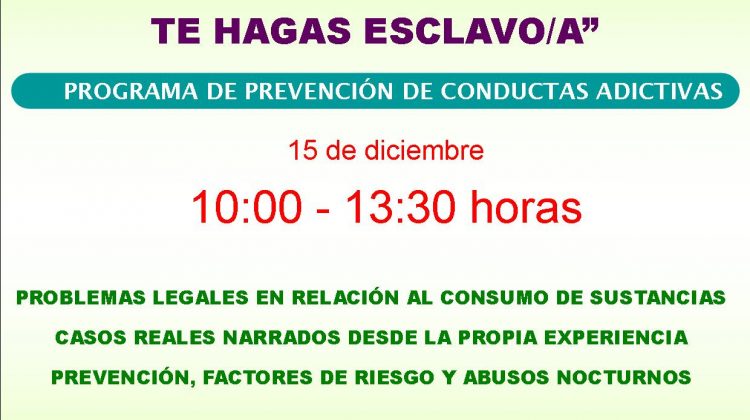 El Programa de Conductas Adictivas de la Mancomunidad “Vegas Bajas”, celebra el próximo jueves día 15 de diciembre la Jornada “Todos/as nacemos libres, no te …