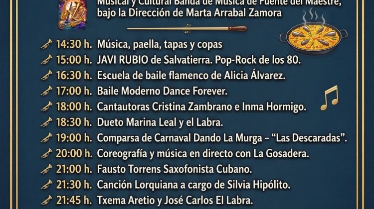 La Asociación Musical y Cultural Banda de Música de Fuente del Maestre ha organizado, para el próximo sábado 14 de Marzo en “El Granero”, una …
